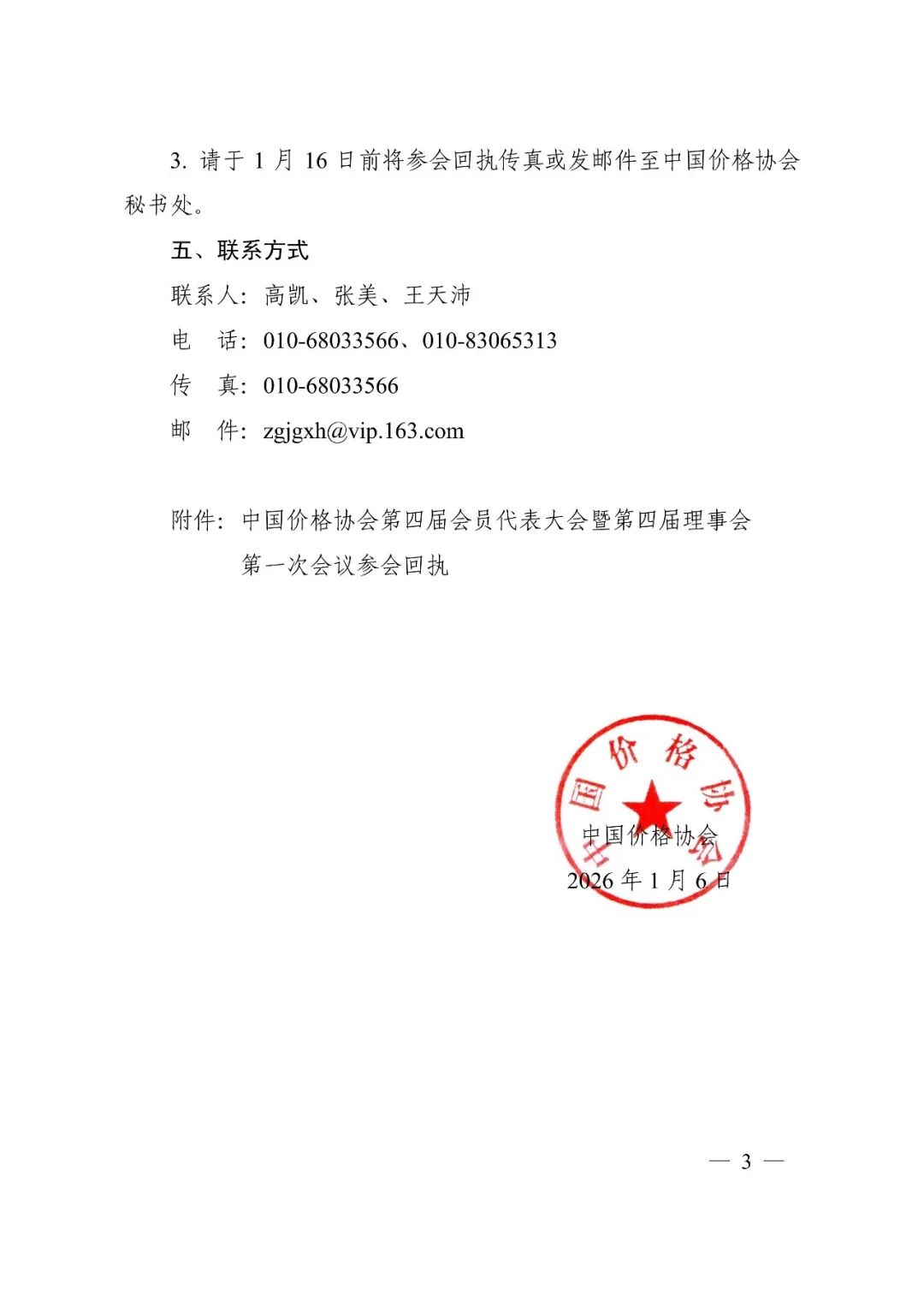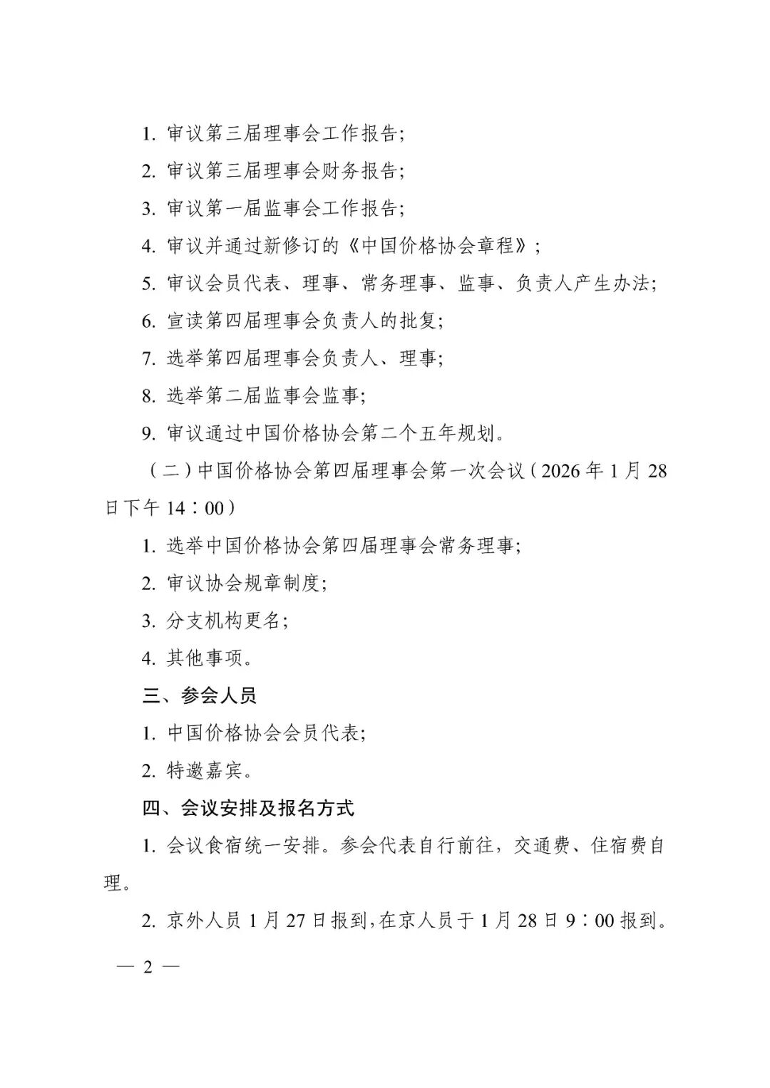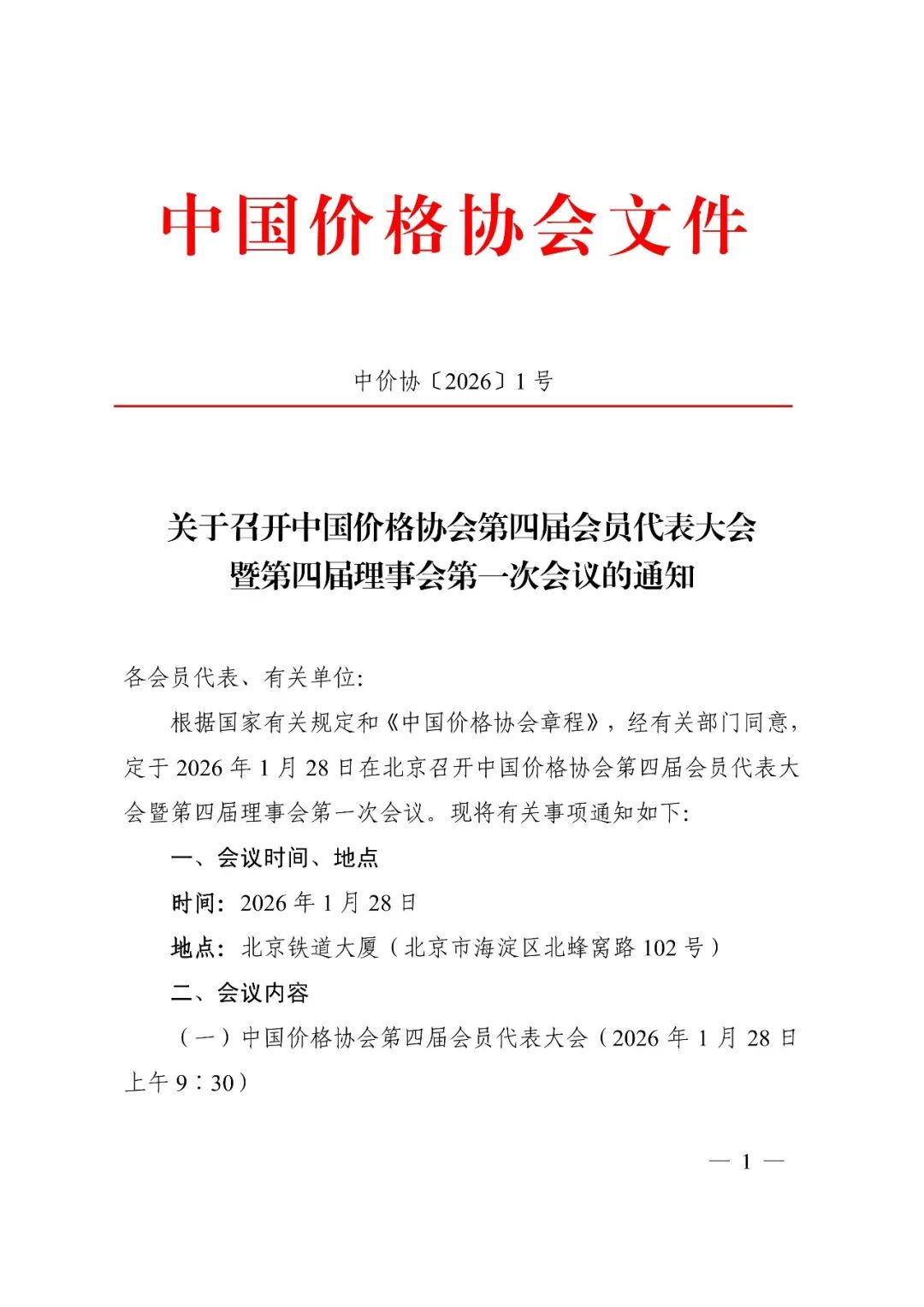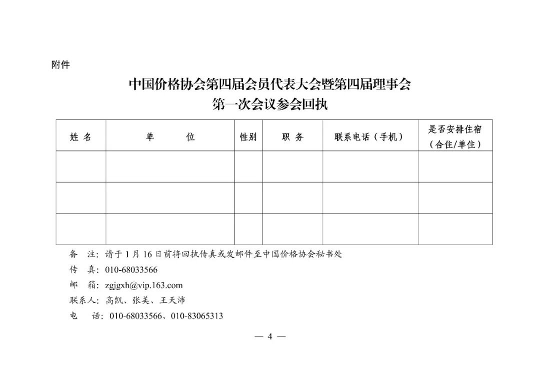 关于召开中国价格协会第四届会员代表大会暨第四届理事会第一次会议的通知